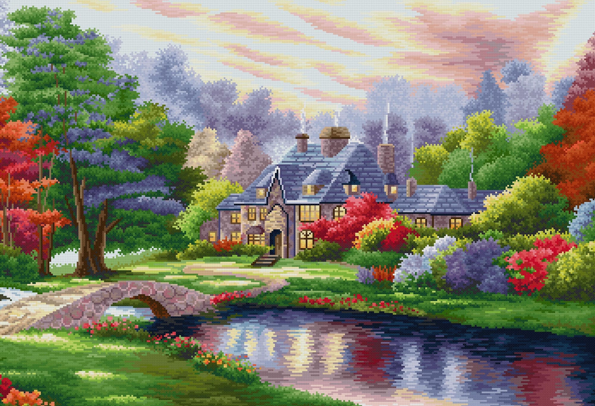 Kit pentru broderie manuală compus din: pânză Zweigart cu 9 fire/cm., fir mouline DMC bumbac 100%, ac special cu vârf bont și ureche alungită, diagramă și instrucțiuni de lucru. Modelul are 85 de culori, se lucrează în punct goblen și dimensiunea modelului cusut este 38/26 cm.