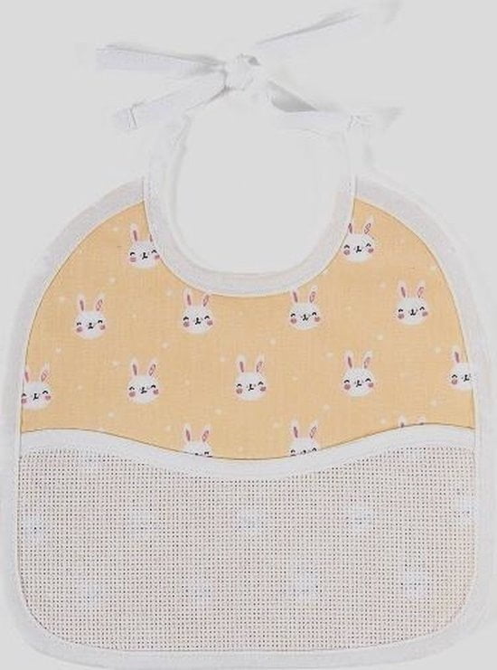 Bavetă confecționață din material de bumbac 100%, cu buzunar din pânză Aida cu 5,5 pct./cm., special conceput pentru personalizarea acestor drăguțe obiecte din trusoul bebelușilor.