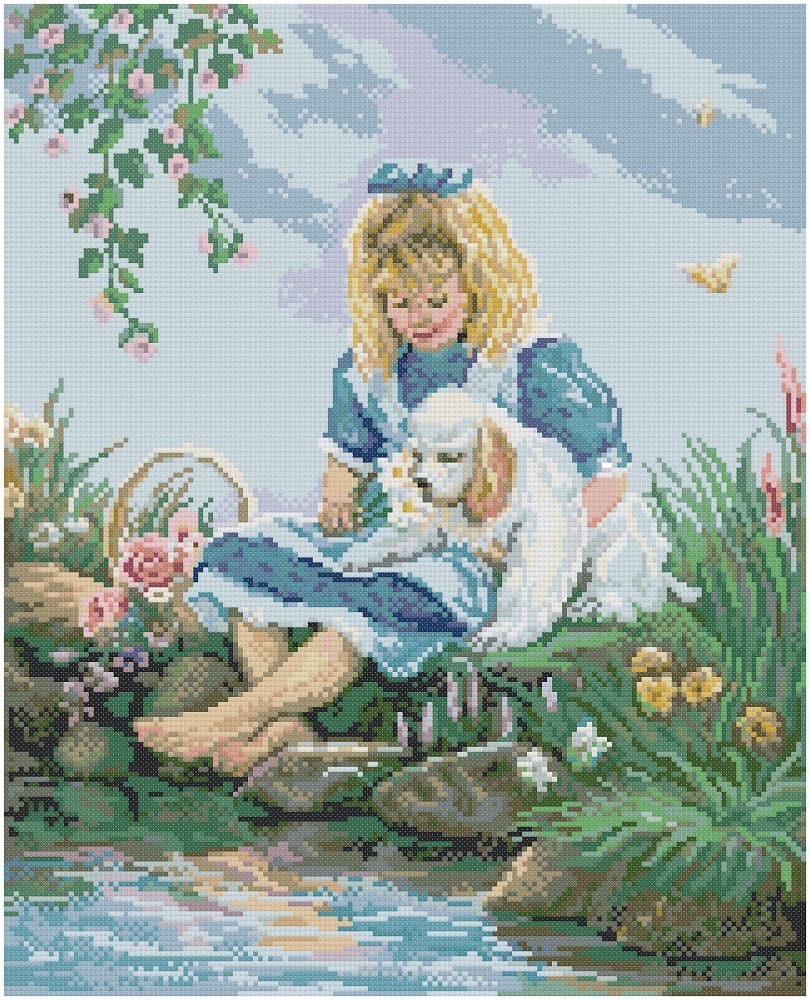 Complete kit, with Mouline DMC thread 100% cotton, Zweigart canvas with 9 threads per cm., Needle, sketch, work instructions and color image.