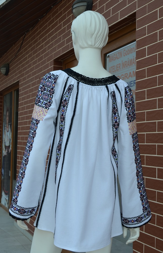 Cămașă națională cusută pe pânză foarte apropiată ca aspect cu pânza de casă, bbc.100%, cu fir Mouline special DMC 100%bbc, lucrată în punct satin sau pe fir, încheiată și finisată manual. Mărimea cămășii prezentate este M dar există posibilitatea de a achiziționa kitul pentru această cămașă, dacă doriți altă mărime.