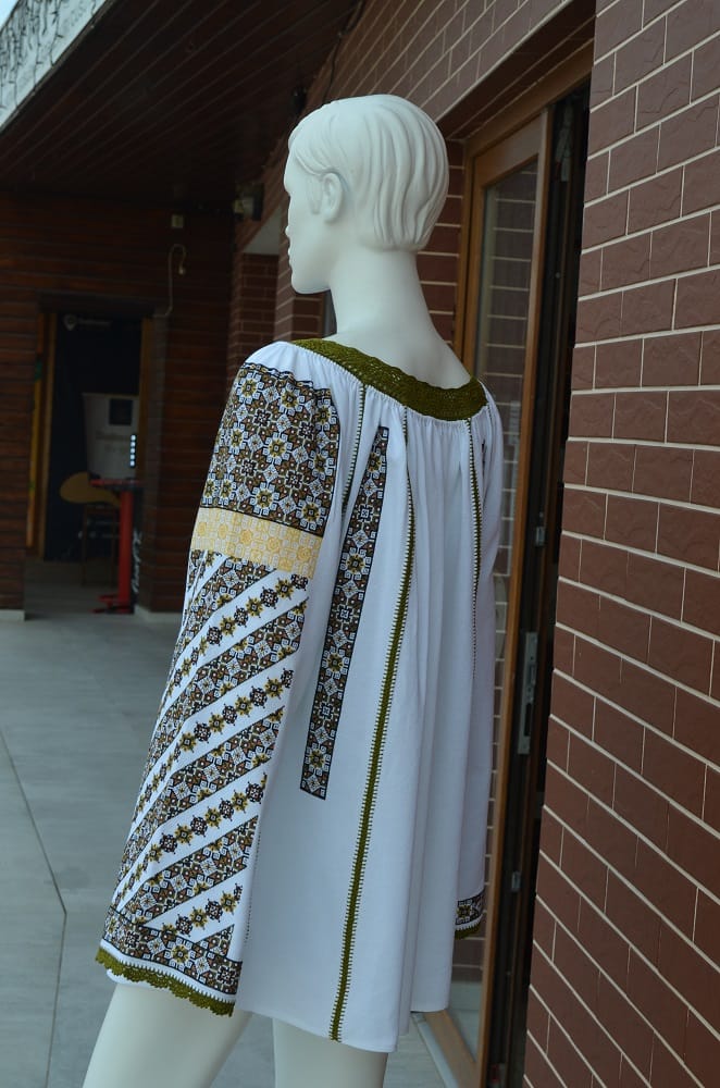 Cămașă națională cusută pe pânză foarte apropiată ca aspect cu pânza de casă, bbc.100%, cu fir Mouline special DMC 100%bbc, lucrată în punct de cruciuliță și punct de contur, încheiată și finisată manual. Mărimea cămășii prezentate este XL dar există posibilitatea de a achiziționa kitul pentru această cămașă dacă doriți altă mărime.