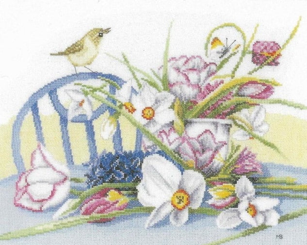 Un superb aranjament ce surprinde toată gingășia primăverii, care se lucrează pe pânză unifil 100% bumbac cu 10,5 pct./cm., în punct de cruciuliță și punct de contur, cu fir mouline special DMC. Kitul mai conține diagrama, ac special cu vârf bont și ureche alungită, instrucțiunile de lucru și imaginea color. Acest model, vesel și suav, este achiziția ideală pentru ambientul camerei de zi sau pentru oricare colț al casei unde vreți să puneți primăvara.
