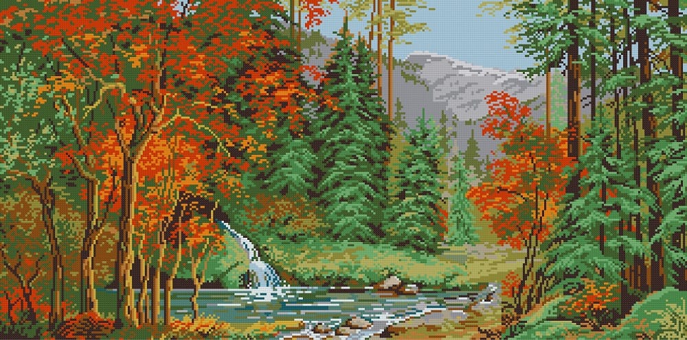 Kit pentru broderie manuală compus din: pânză Zweigart cu 9 fire/cm., fir mouline DMC bumbac 100%, ac special cu vârf bont și ureche alungită, diagramă și instrucțiuni de lucru. Modelul are 23 de culori, se lucrează în punct goblen și dimensiunea modelului cusut este 35/17cm.