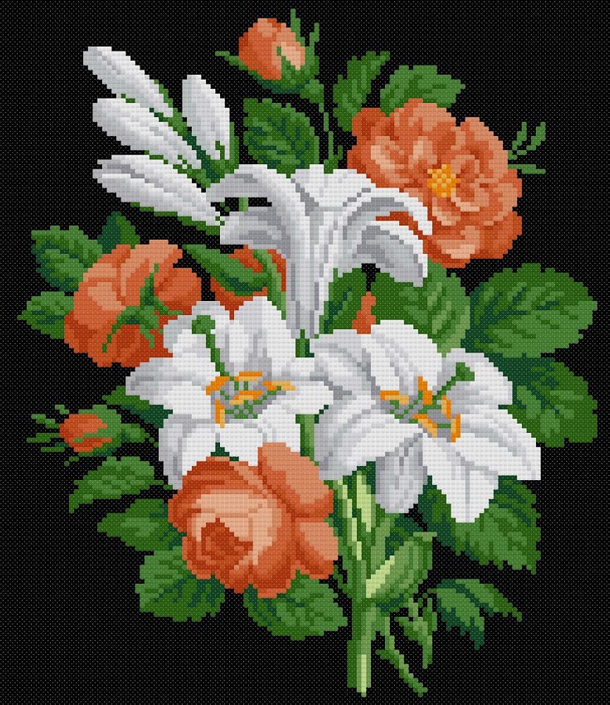 Kit pentru broderie manuală compus din: pânză Zweigart cu 9 fire/cm., fir mouline DMC bumbac 100%, ac special cu vârf bont și ureche alungită, diagramă și instrucțiuni de lucru. Modelul are 18 culori, se lucrează în punct goblen și dimensiunea modelului cusut este 14/16cm.
