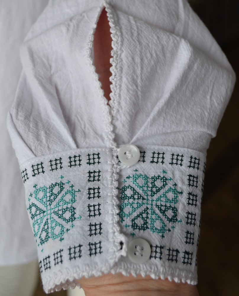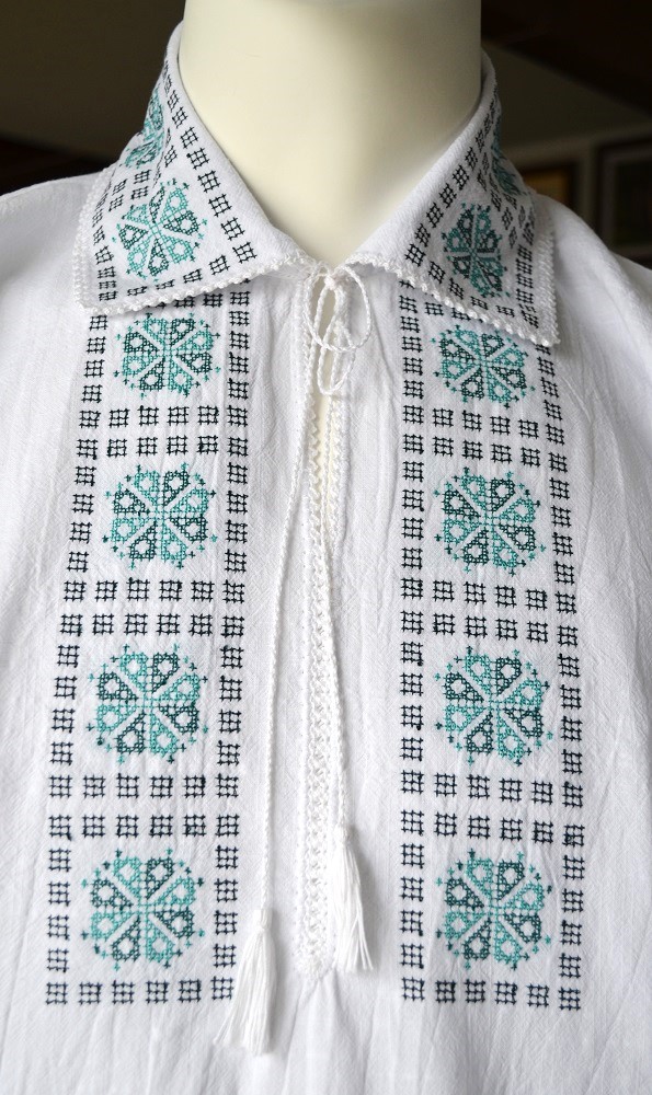 Cămașă brodată pe pânză din in, finisată parțial cu motiv croșetat manual. Mărime produs 42