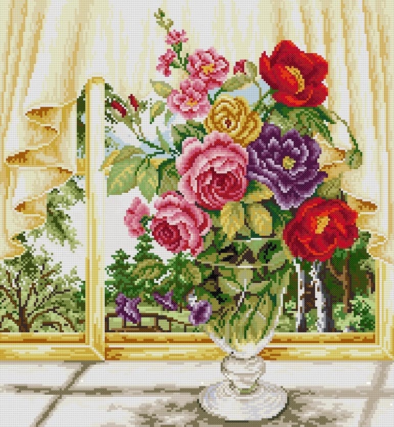 Kit pentru broderie manuală compus din: pânză Zweigart cu 9 fire/cm., fir mouline DMC bumbac 100%, ac special cu vârf bont și ureche alungită, diagramă și instrucțiuni de lucru. Modelul are 57 de culori, se lucrează în punct goblen și dimensiunea modelului cusut este 20/22cm.