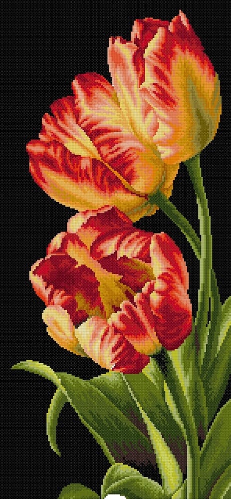 Kit pentru broderie manuală compus din: pânză Zweigart cu 9 fire/cm., fir mouline DMC bumbac 100%, ac special cu vârf bont și ureche alungită, diagramă și instrucțiuni de lucru. Modelul are 30 de culori, se lucrează în punct goblen și dimensiunea modelului cusut este 16/35 cm.