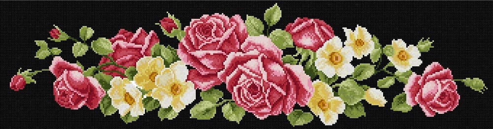 Kit pentru broderie manuală compus din: pânză Zweigart cu 9 fire/cm., fir mouline DMC bumbac 100%, ac special cu vârf bont și ureche alungită, diagramă și instrucțiuni de lucru. Modelul are 28 de culori, se lucrează în punct goblen și dimensiunea modelului cusut este 36/9cm.